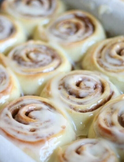 Soft, fluffy rolls with a cinnamon-sugar filling and a light glaze. Best enjoyed warm.